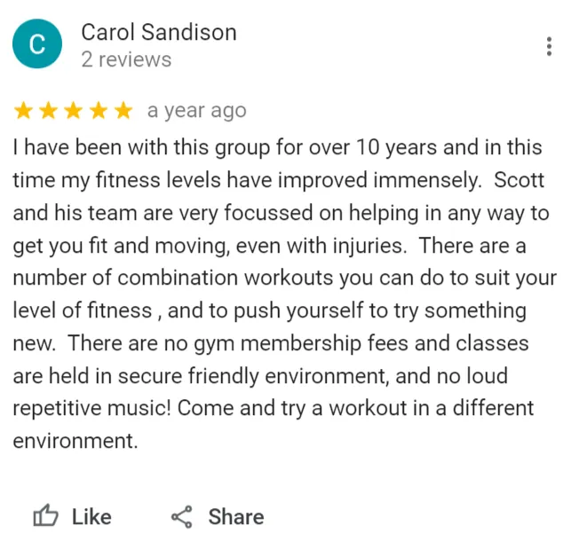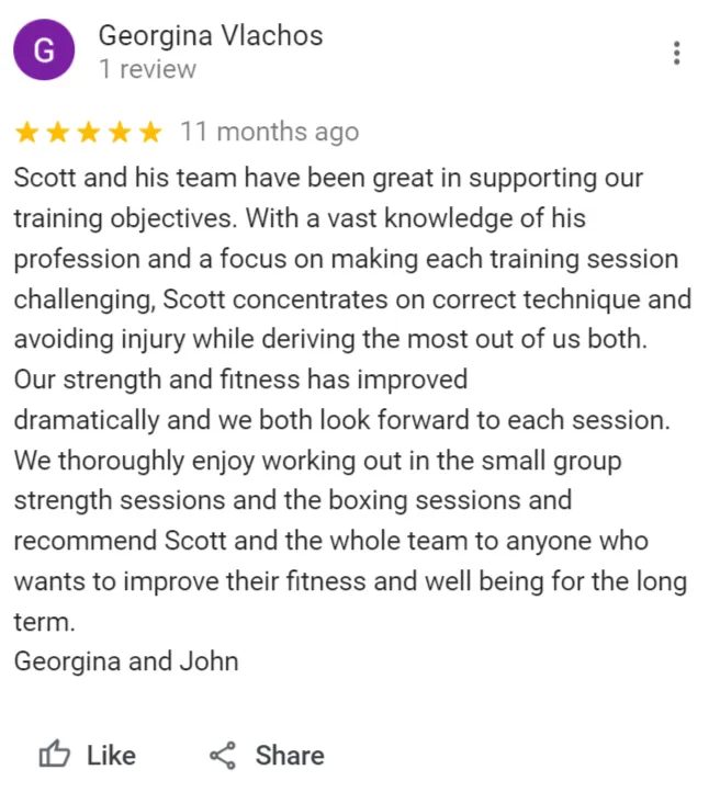 "I've been training with Scott for almost 3 years now, and believe he is one of the most experienced and committed trainers around. I started training once a week in a personal one on one session as I felt my fitness and movement was a struggle in my very physically demanding job. I also had some health issues with high blood pressure and borderline diabetes and Scott and I worked together to help me focus on my goal to achieve better movement, a healthier lifestyle, higher energy levels and more importantly my desire to reduce my blood pressure medication and reverse my Type 2 Diabetes. I must admit that I had seen better results after I added in an additional group training session and I'm proud to say that I no longer take medication for High Blood Pressure and my Diabetes is nonexistent. Scott is very focused on my goals and makes every session challenging (and somehow fun) and he is always professional, reliable and punctual. Importantly he always ensures my technique is correct to avoid injury and that my personal goals are being met.”